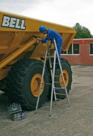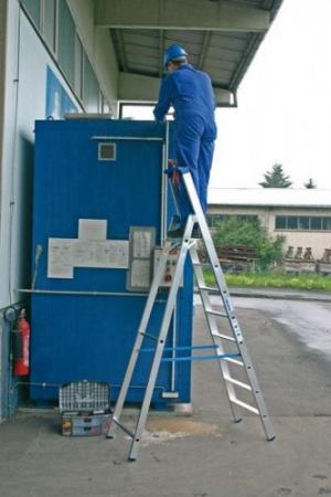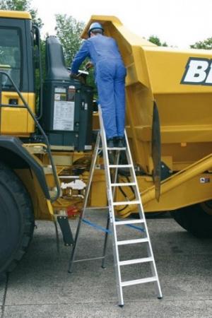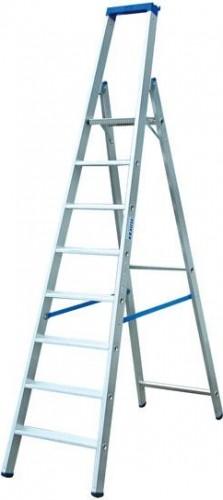 STABILO-профессиональная серия. Односторонняя алюминиевая стремянка с высокопрочным развальцованным соединением ступенек с боковинами для долгосрочного профессионального применения. Боковины из алюминиевого прессованного профиля с дополнительным усилением в особо нагруженных местах для повышения жесткости и защиты кромок. Устойчивая профилированная площадка с высокой дугой безопасности для удобного расположения при длительных работах. Заменяемая полка для инструментов с крюком для ведра. Опорная часть с прочными поперечными распорками. Защитные верхние заглушки на опорной части лестницы исключают защемление при раздвижении стремянки. Стремянки с 6 ступеньками и более имеют дополнительно два ремня, устойчивых к атмосферным воздействиям.УпаковкаШирина: 610 мм Глубина: 170 мм Высота: 2 750 мм Вес: 10.63 кг