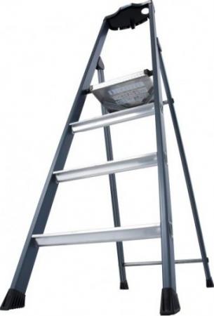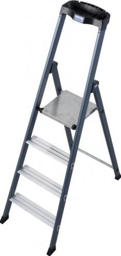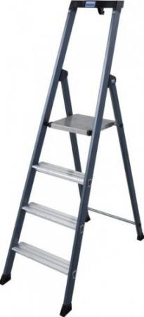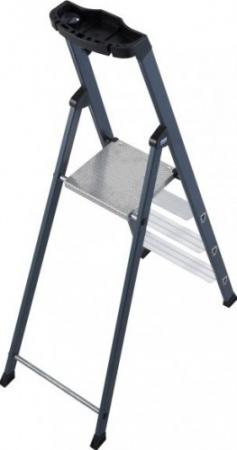 STABILO-профессиональная серия. Односторонняя стремянка с профилированными ступенями и высокой дугой безопасности. Боковины опорной и подъёмной частей из анодированного алюминия. Устойчивое от истирания покрытие «чистые руки» для работ, при которых важно соблюдение чистоты и гигиены. Большая эргономично выполненная полка для инструментов с двумя крюками для ведер. Соединение ступенек с боковинами посредством развальцовки для долговечного соединения, характерное для профессиональных лестниц. Большая противоскользящая алюминиевая площадка для устойчивого положения при работе. Стабильные шарниры соединяют боковины подъемной и опорной частей и обеспечивают тем самым высокую общую стабильность стремянки. Увеличенные опорные наконечники обеспечивают большую опорную площадь.УпаковкаШирина: 460 мм Глубина: 130 мм Высота: 1 600 мм Вес: 4.47 кг
