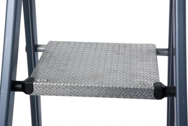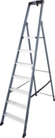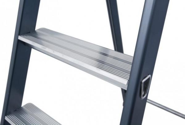 STABILO-профессиональная серия. Односторонняя стремянка с профилированными ступенями и высокой дугой безопасности. Боковины опорной и подъёмной частей из анодированного алюминия. Устойчивое от истирания покрытие «чистые руки» для работ, при которых важно соблюдение чистоты и гигиены. Большая эргономично выполненная полка для инструментов с двумя крюками для ведер. Соединение ступенек с боковинами посредством развальцовки для долговечного соединения, характерное для профессиональных лестниц. Большая противоскользящая алюминиевая площадка для устойчивого положения при работе. Стабильные шарниры соединяют боковины подъемной и опорной частей и обеспечивают тем самым высокую общую стабильность стремянки. Увеличенные опорные наконечники обеспечивают большую опорную площадь.УпаковкаШирина: 530 мм Глубина: 130 мм Высота: 2 300 мм Вес: 7.09 кг