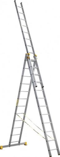 Серия P3 - алюминиевая профессиональная универсальная трехсекционная лестница.Предназначена для профессионального использования при строительстве, высотном монтаже, спасательных работах. ПреимуществаУсиленный профильДвухкомпонентные заглушкиУпаковкаШирина: 480 мм Глубина: 233 мм Высота: 3 508 мм Вес: 26.30 кг