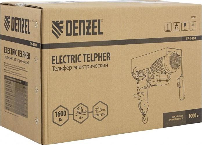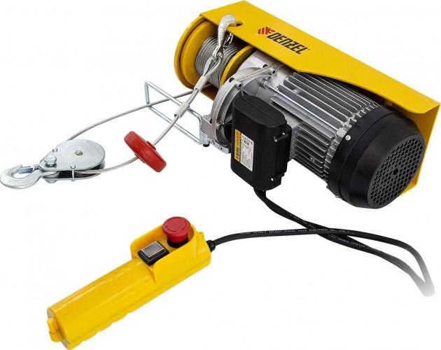 Электрический тельфер Denzel TF-1000. Он способен поднимать грузы весом до 500 кг напрямую и до 1000 кг через блок полиспаста на высоту до 12 м со скоростью намотки троса 8 м/мин. Он пригодится в автосервисе, на строительной площадке, в гараже или на складе. ПреимуществаТормозной механизмАвтоматическое отключение тельфераКрюк оборудованный защитной скобойПрочность и высокий ресурс тросаДля удобства работыУпаковкаШирина: 260 мм Глубина: 560 мм Высота: 360 мм Вес: 32.26 кг